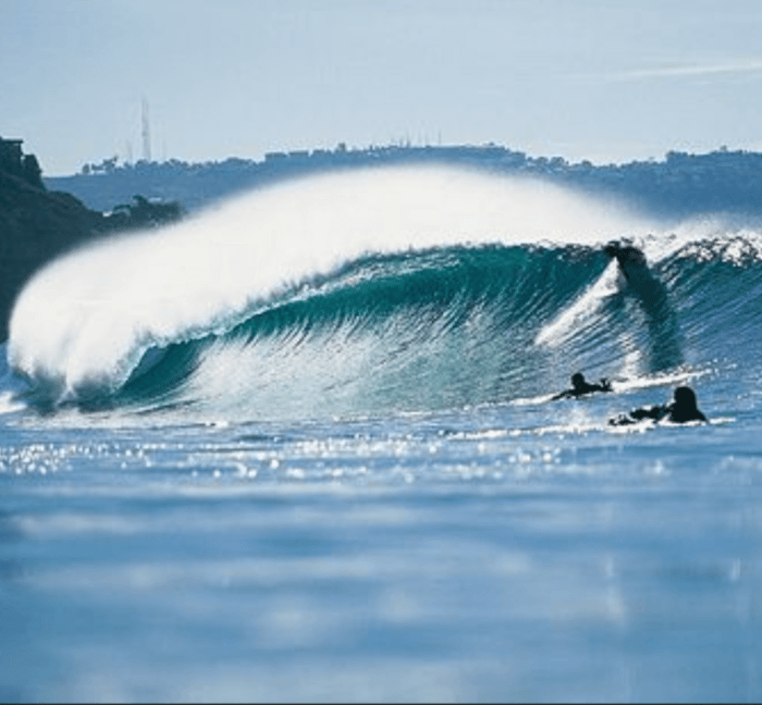 One of the best waves for Surfing in San Diego is Cardiff Reef or officially Cardiff State Beach. Cardiff Reef is perfect for beginner, intermediate and advanced surfers. The outside generally offers two distinct peaks, South Peak and Suck Outs. The South peak is preferred by long-boarders while Suck Outs is favored by those who want to shred. Beginning surfers can take advantage of the inside waves which offer smooth long white water waves. The Willis Brothers Milton and Michael record holders for the world’s largest waves surf Cardiff Reef regularly